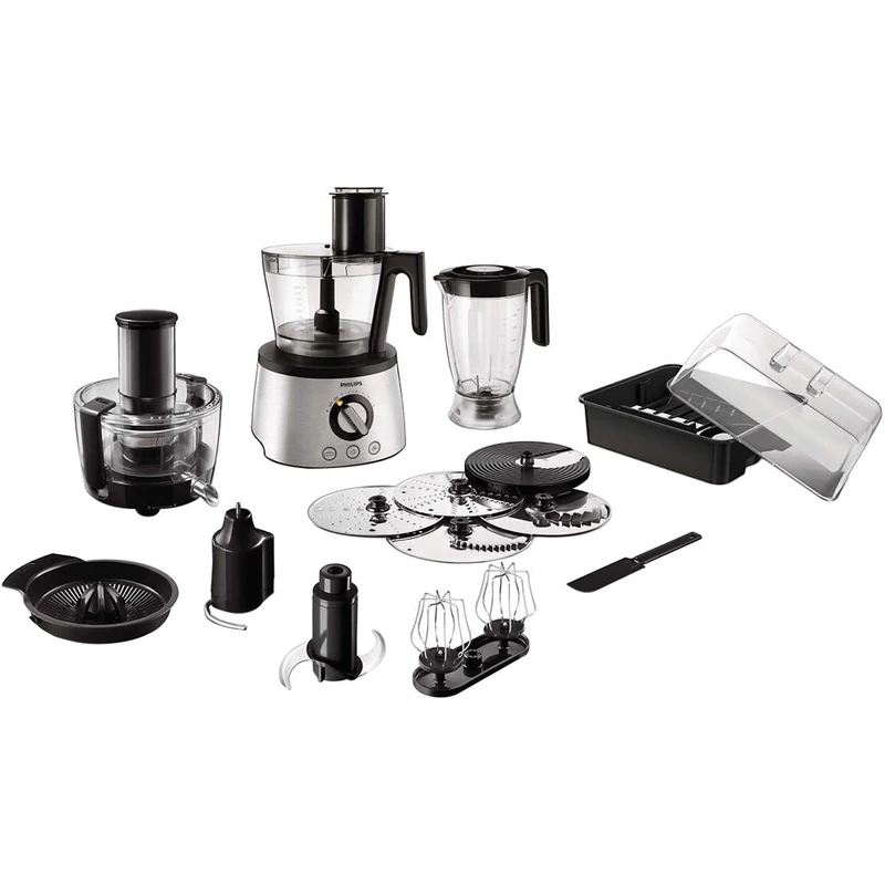 | سایر ویژگیها | - مجهز به فنآوری PowerChop که امکان خرد کردن مواد نرم و سخت را فراهم می سازد. - کلیدهای از پیش تنظیم شده برای عملکرد خاص; خردکردن یخ، زدن خمیر و همزدن کرم - همزن دو قلو با کارایی بیشتر - دارای یک عدد دیسک چیپس ساز که از 1 تا 7 میلی متر قابل تنظیم است. - آبمیوه گیری با دهانه بسیار عریض -میزان صدا: 86 دسی بل |